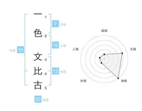 一色 文比古さんの地格は13画の5点!