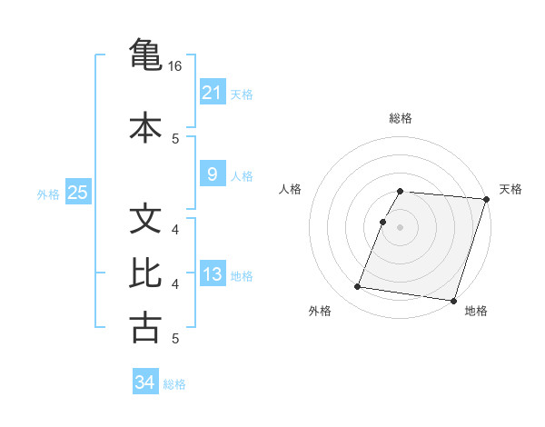 亀本 文比古さんの天格は21画の5点!