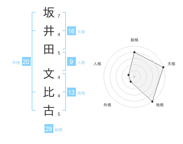 坂井田 文比古さんを姓名の画数から五運を鑑定