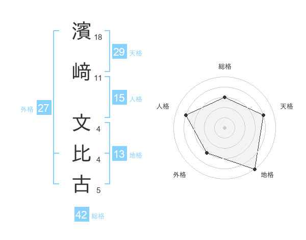 濱﨑 文比古さんの地格は13画の5点!