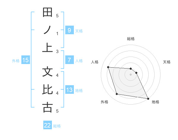 田ノ上 文比古さんを姓名の画数から五運を鑑定