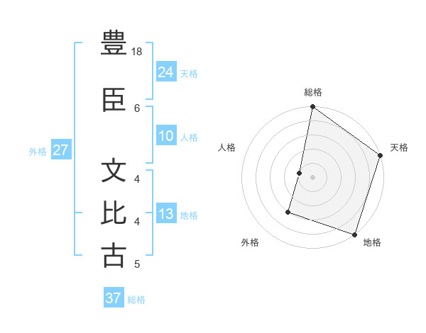 豊臣 文比古さんを姓名の画数から五運を鑑定