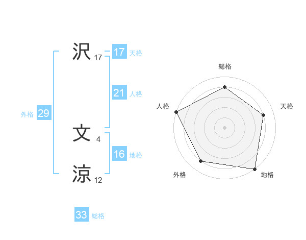 沢 文涼さんの総格は33画の4点!