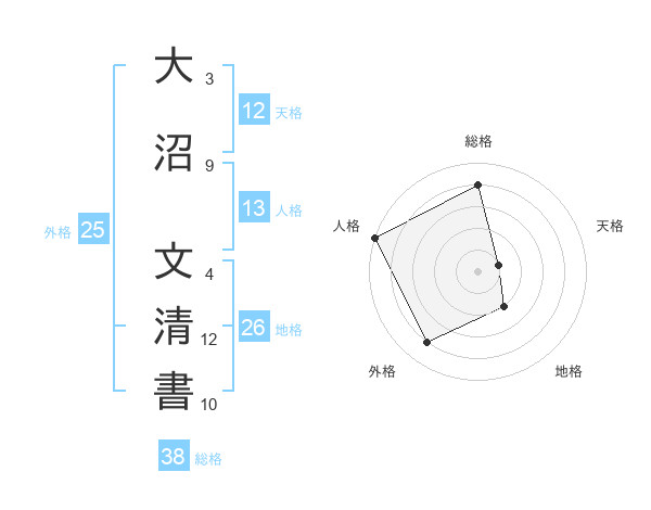 大沼 文清書さんを姓名の画数から五運を鑑定