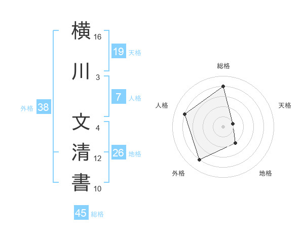 横川 文清書さんの総格は45画の4点!