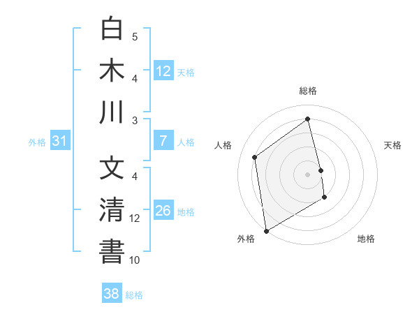 白木川 文清書さんを姓名の画数から五運を鑑定
