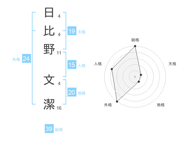 日比野 文潔さんの総格は39画の5点!