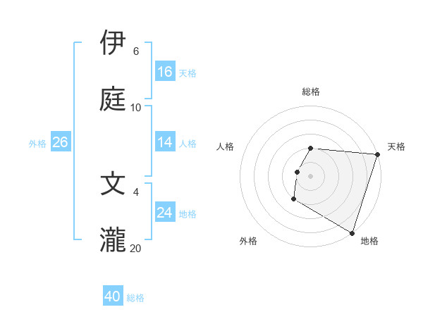 伊庭 文瀧さんを姓名の画数から五運を鑑定