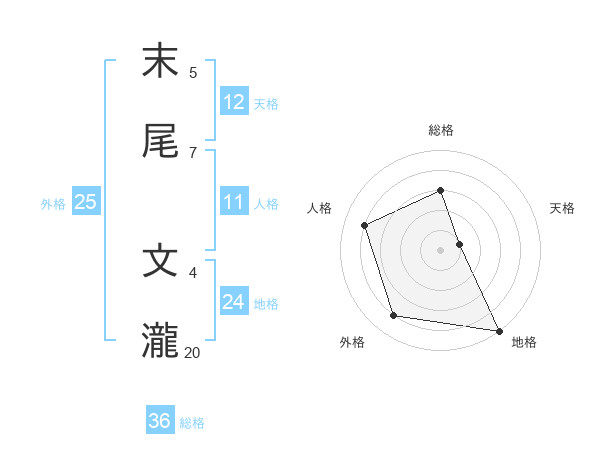 末尾 文瀧さんの地格は24画の5点!