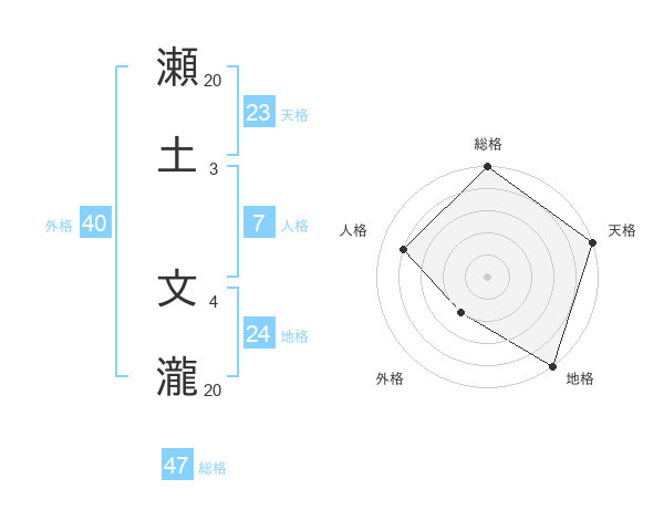 瀬土 文瀧さんの総格は47画の5点!
