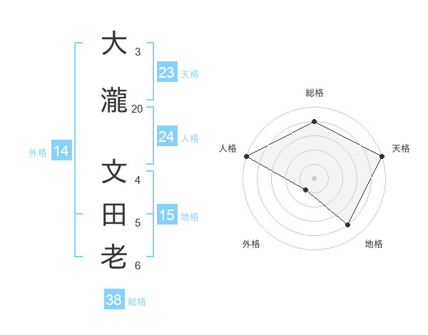 大瀧 文田老さんの総格は38画の4点!