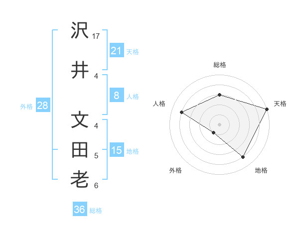 沢井 文田老さんの天格は21画の5点!