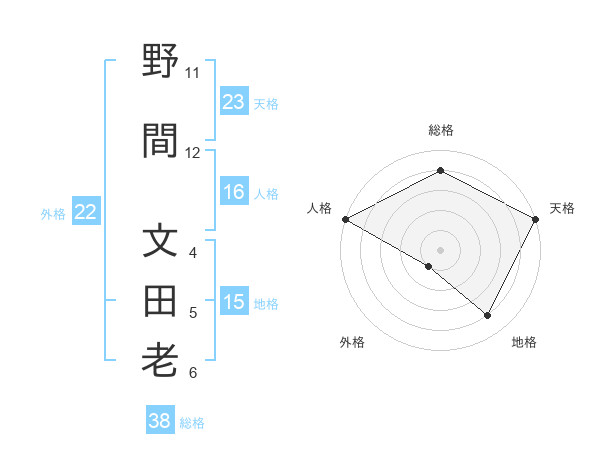 野間 文田老さんの総格は38画の4点!