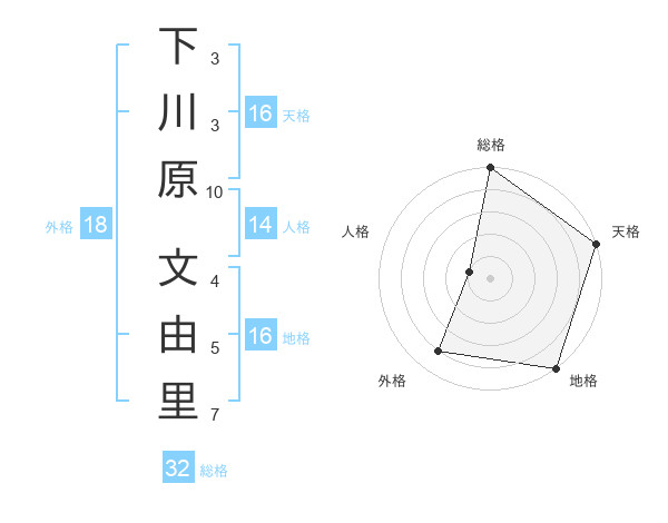 下川原 文由里さんの天格は16画の5点!