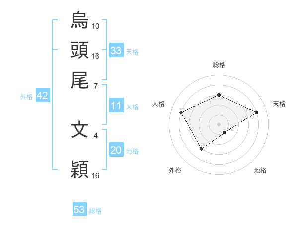烏頭尾 文穎さんを姓名の画数から五運を鑑定