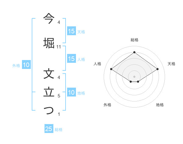 今堀 文立つさんを姓名の画数から五運を鑑定
