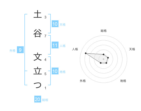 土谷 文立つさんを姓名の画数から五運を鑑定
