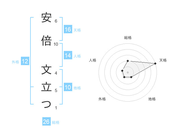 安倍 文立つさんを姓名の画数から五運を鑑定