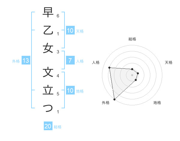 早乙女 文立つさんを姓名の画数から五運を鑑定