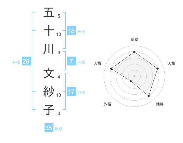 五十川 文紗子さんを姓名の画数から五運を鑑定