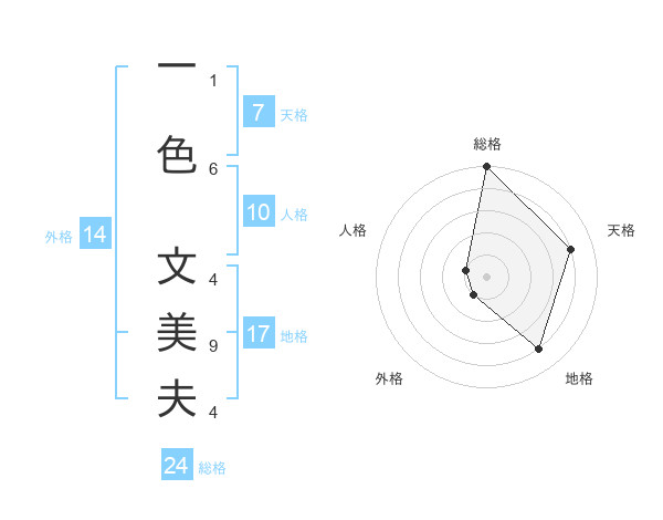 一色 文美夫さんを姓名の画数から五運を鑑定