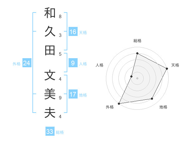 和久田 文美夫さんを姓名の画数から五運を鑑定