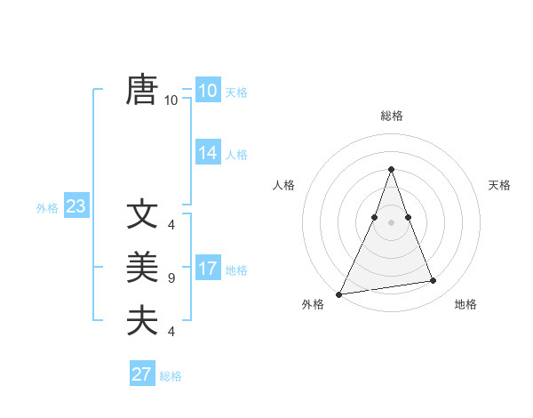 唐 文美夫さんを姓名の画数から五運を鑑定