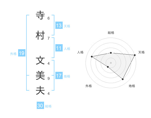寺村 文美夫さんの天格は13画の5点!