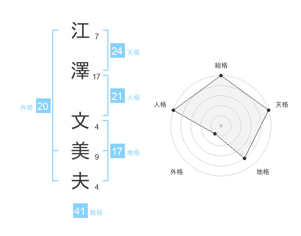 江澤 文美夫さんを姓名の画数から五運を鑑定