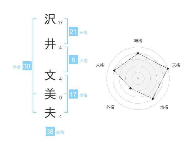 沢井 文美夫さんを姓名の画数から五運を鑑定