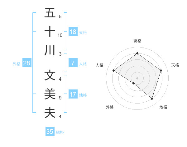 五十川 文美夫さんの総格は35画の4点!