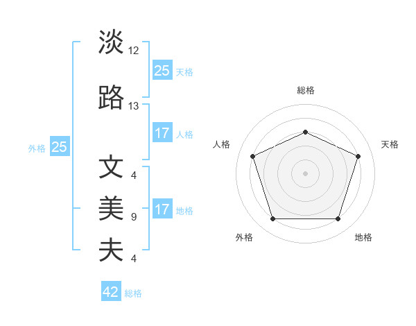 淡路 文美夫さんの地格は17画の4点!