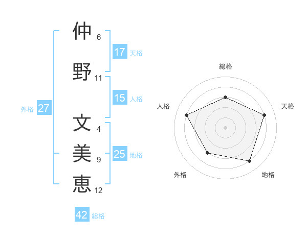 仲野 文美恵さんを姓名の画数から五運を鑑定