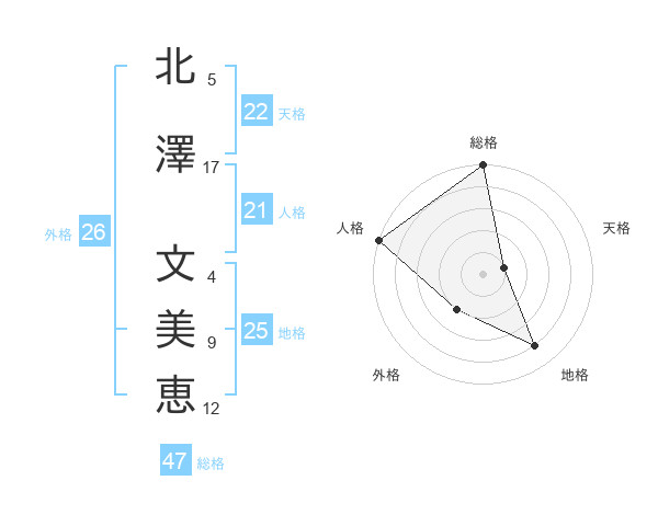 北澤 文美恵さんを姓名の画数から五運を鑑定