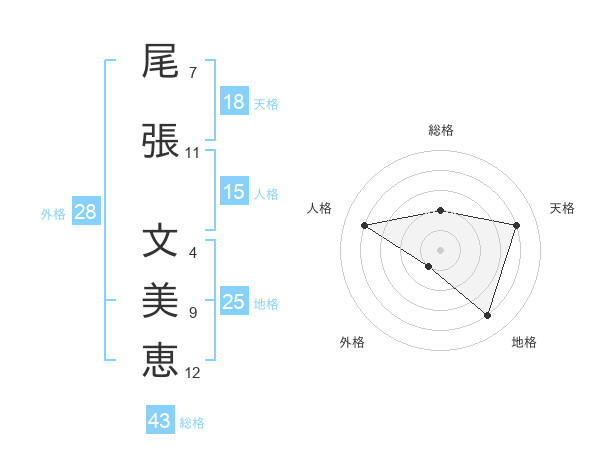 尾張 文美恵さんを姓名の画数から五運を鑑定