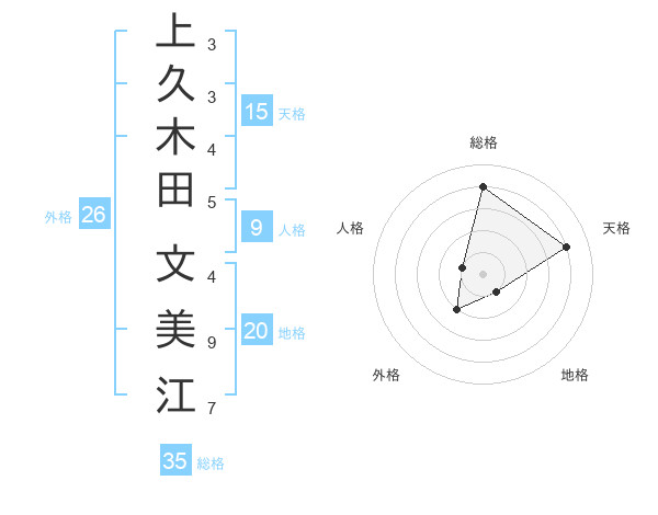 上久木田 文美江さんを姓名の画数から五運を鑑定