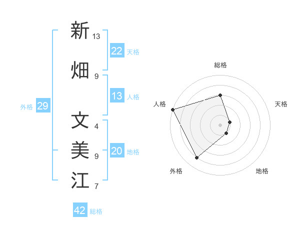 新畑 文美江さんを姓名の画数から五運を鑑定