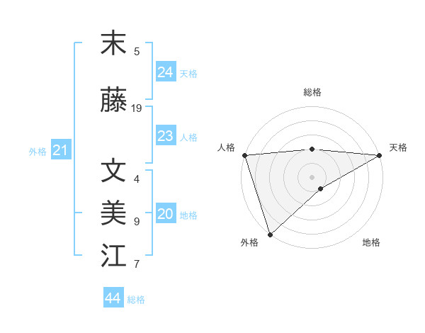 末藤 文美江さんの天格は24画の5点!