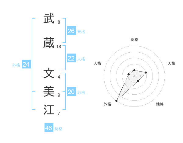 武蔵 文美江さんを姓名の画数から五運を鑑定