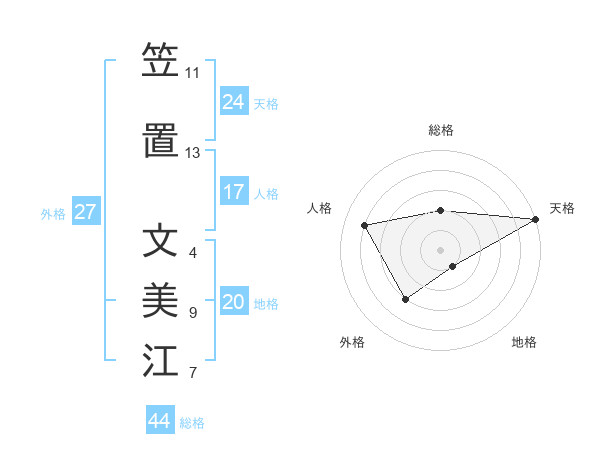 笠置 文美江さんの天格は24画の5点!