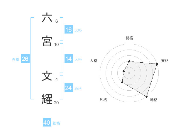 六宮 文耀さんの天格は16画の5点!