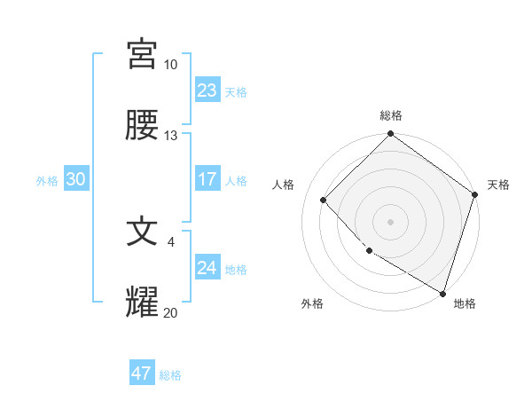 宮腰 文耀さんを姓名の画数から五運を鑑定