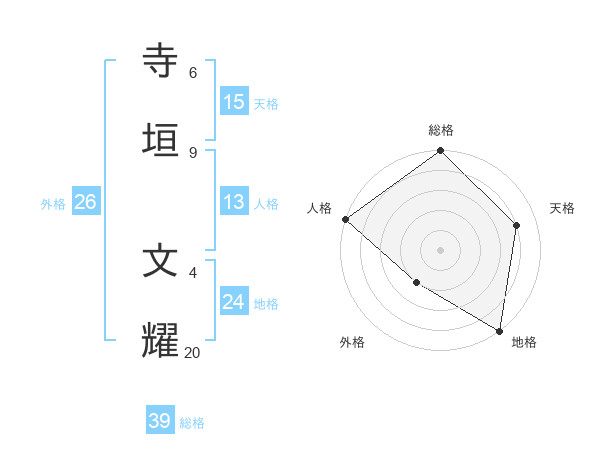 寺垣 文耀さんの総格は39画の5点!