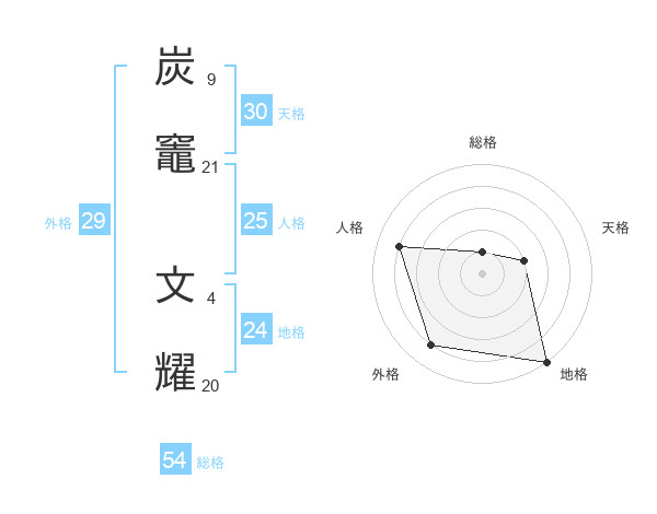 炭竈 文耀さんを姓名の画数から五運を鑑定