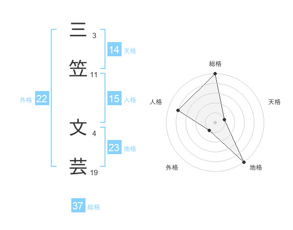三笠 文芸さんを姓名の画数から五運を鑑定