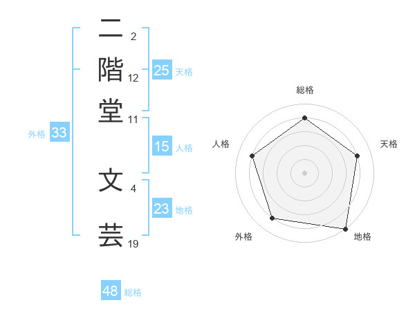 二階堂 文芸さんの地格は23画の5点!
