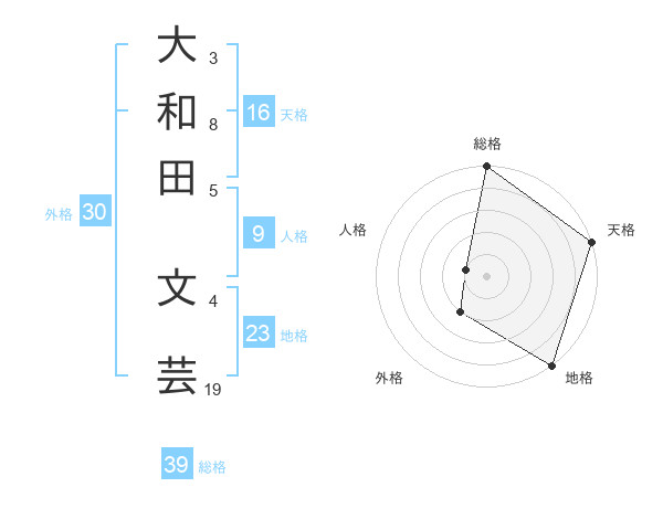 大和田 文芸さんを姓名の画数から五運を鑑定