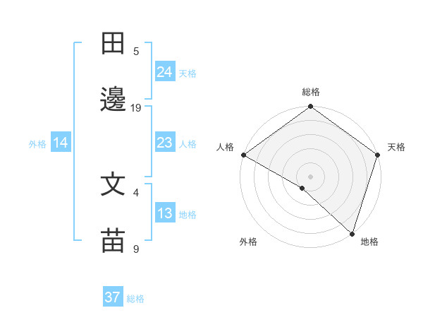 田邊 文苗さんの総格は37画の5点!