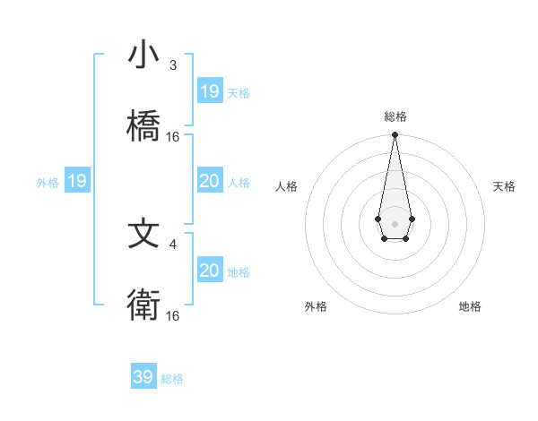 小橋 文衛さんの総格は39画の5点!