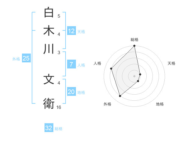 白木川 文衛さんの総格は32画の5点!